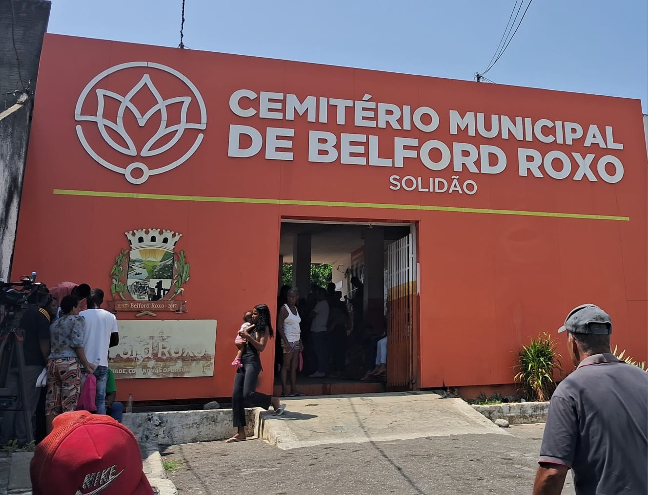 Familiares e amigos se despedem de Diego de Jesus, de 35 anos, uma das vítimas do ataque a tiros ocorrido em um bar de Belford Roxo, na Baixada Fluminense, neste domingo (22). Segundo relatos de seus familiares, Diego havia ido ao estabelecimento apenas para comprar uma cerveja.