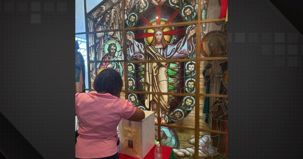 A reportagem da Super Rádio Tupi está na Paróquia São Cosme e Damião no Andaraí, onde acontecem missas de hora em hora durante todo o dia. Dona Cinésia, que frequenta a igreja com a família há anos, foi pagar uma promessa.