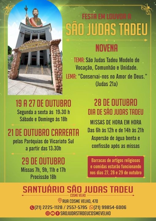 Neste sábado (28), é comemorado o Dia de São Judas Tadeu, padroeiro das causas impossíveis. Além disso, hoje também é Dia do Flamenguista e o Santo também é o Padroeiro do Clube Rubro Negro.