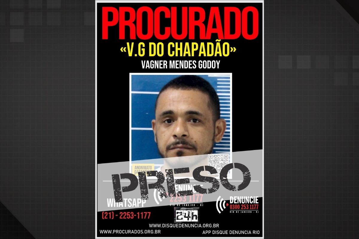 Uma operação do 41º BPM (Colégio), com apoio do Disque Denúncia, resultou na prisão de Vagner Mendes Godoy, de 42 anos, conhecido como “V.G. do Chapadão”, considerado uma das principais lideranças do tráfico no Complexo do Chapadão, Zona Norte do Rio.