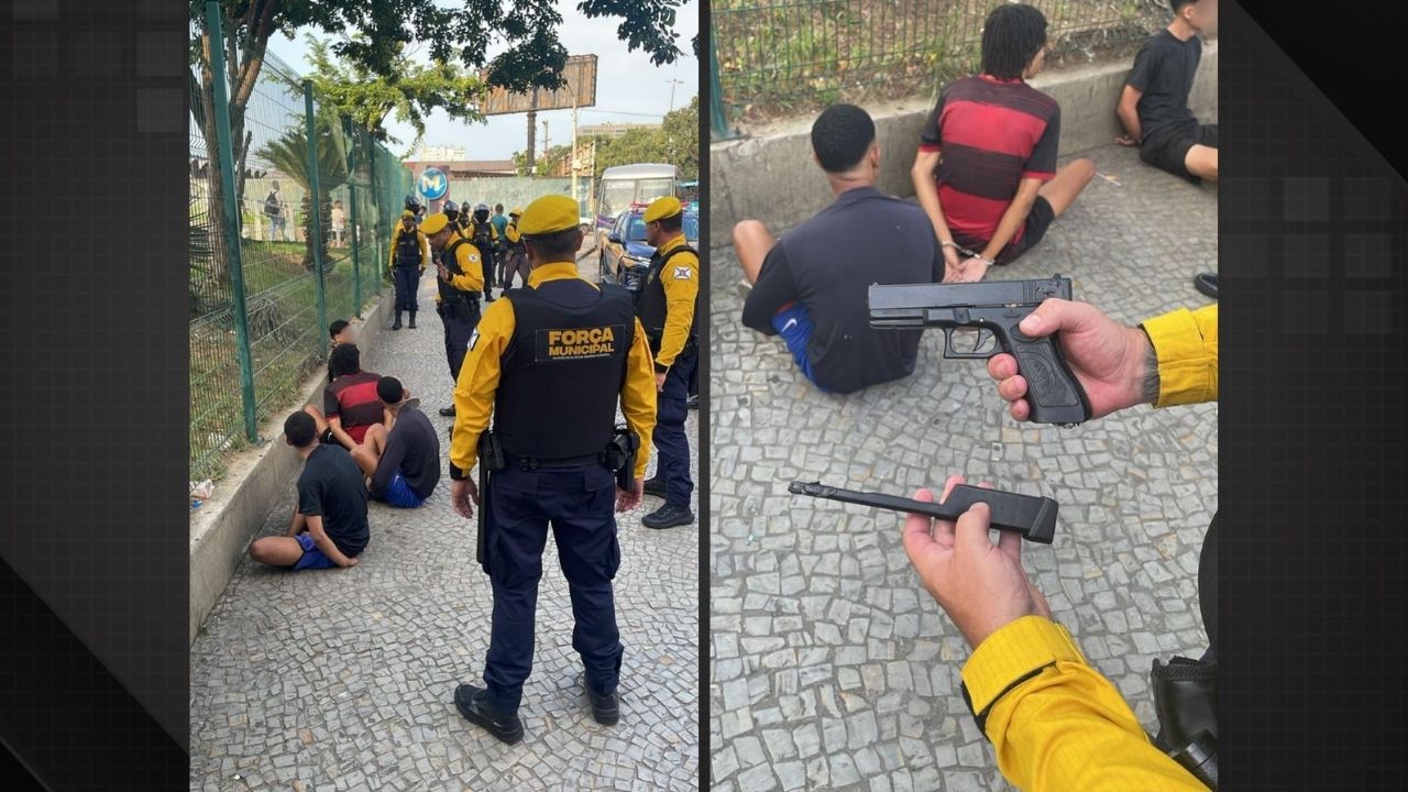 A equipe foi acionada pelo próprio motorista do coletivo, que sinalizou a entrada de quatro passageiros, incluindo dois adolescentes, pela porta traseira em atitude que levantava suspeitas. Os guardas embarcaram imediatamente e abordaram o grupo, frustrando qualquer tentativa criminosa. Durante a revista, foi encontrada uma réplica de arma de fogo em posse de um dos indivíduos.