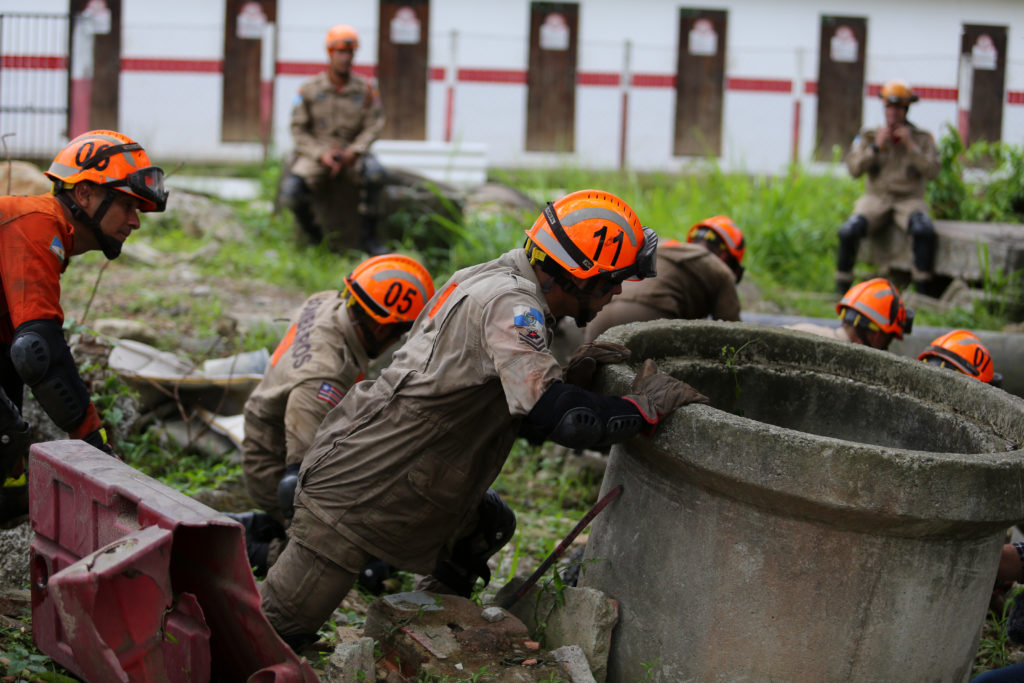 O Corpo de Bombeiros Militar do Estado do Rio de Janeiro (CBMERJ) realizou, nesta quarta-feira (9), um treinamento especial com o objetivo de aprimorar os métodos de operação dos agentes durante grandes desastres naturais. O módulo, que faz parte do Curso de Salvamento Terrestre (CST), ministrado pelo Centro de Instrução Especializada de Bombeiros (CIEB), ensina técnicas específicas na atuação dos militares durante chuvas intensas, deslizamento de terras e desabamento de edificações.