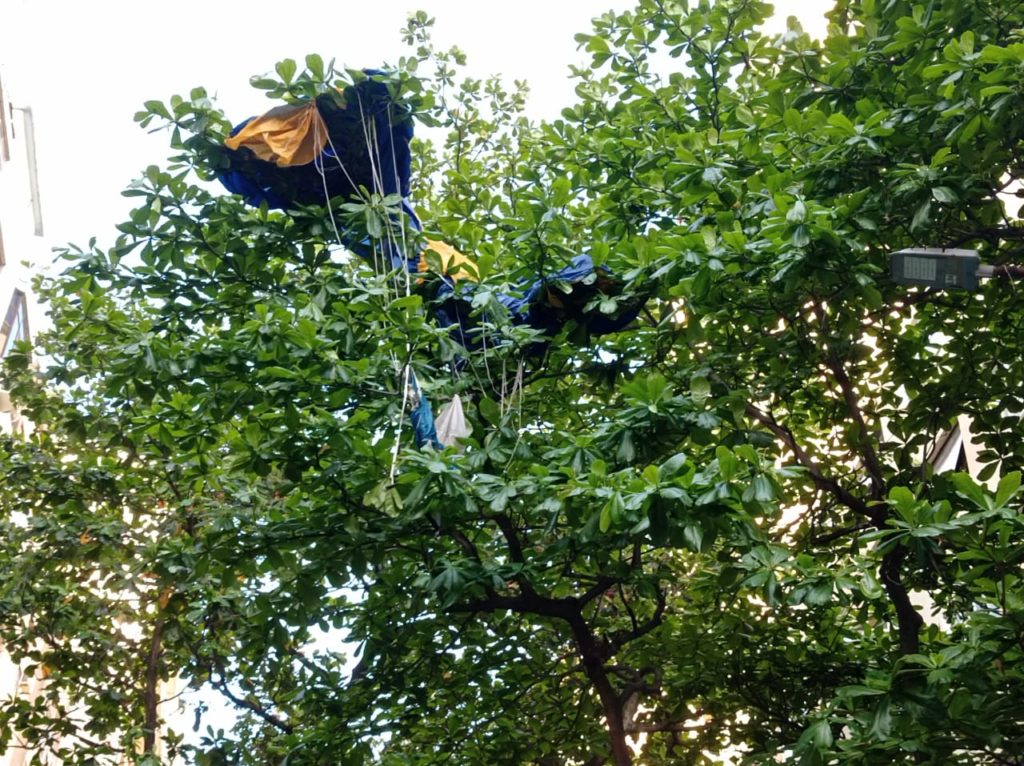 “Eu estava passando pela rua, quando observei que um paraquedas estava caindo. Percebi que um rapaz ficou preso entre os galhos das árvores. Automaticamente, uma guarnição chegou para ajudar. Aproximamos um ônibus no meio da rua, usamos duas escadas para apoiá-lo e conseguimos salvá-lo”, explica o gerente.