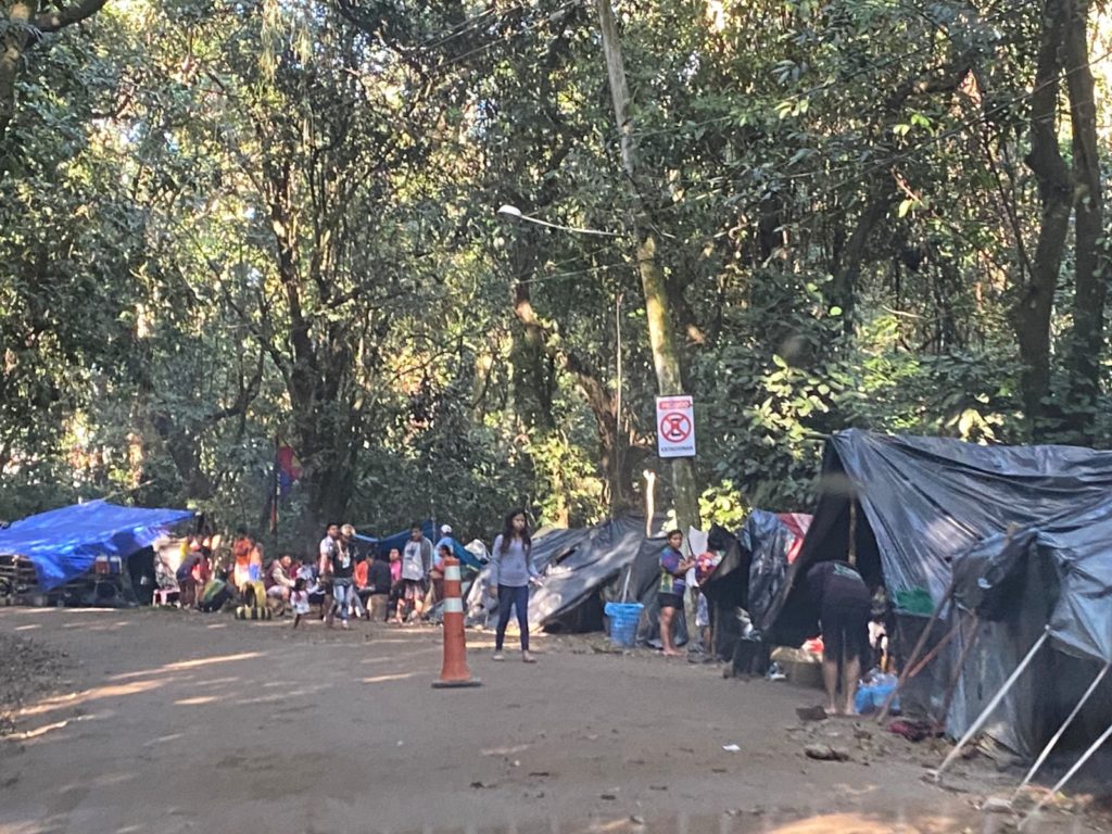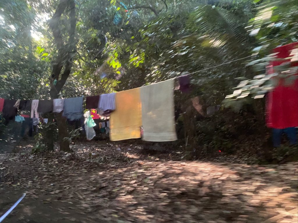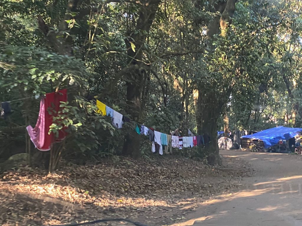 É possível ver, pendurados nas árvores, diversos varais com roupas dos ocupantes. Eles também construíram, com o uso de madeira e plásticos, diversos pontos para dormir.