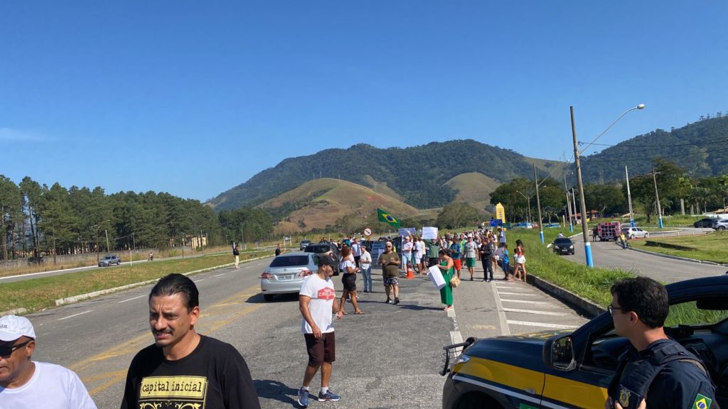 A Polícia Rodoviária Federal acompanha o ato.