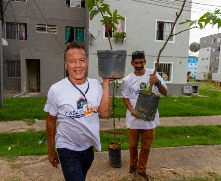 O Casa da Gente promove não apenas a requalificação dos conjuntos, mas realiza ações que contribuem para a sustentabilidade ambiental e a consciência cidadã das famílias envolvidas. A implementação do pomar, além de permitir o consumo de frutas livres de agrotóxicos, estimula o lazer e contribui para o aumento de áreas arborizadas e boas práticas de convivência condominial, incentivando o descarte adequado de resíduos sólidos nas áreas comuns e o uso consciente do espaço.