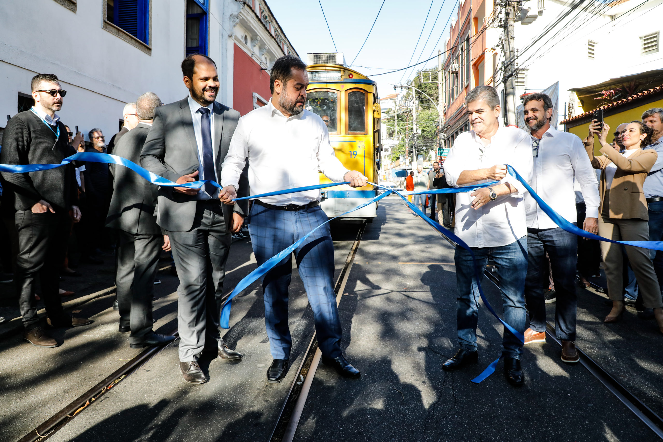 O governador Cláudio Castro inaugurou, nesta terça-feira (27), o primeiro trecho das obras de revitalização do sistema de bondes de Santa Teresa, no ramal Paula Mattos. A partir desta quarta-feira (28), o trajeto entre o Largo dos Guimarães e o Posto de Saúde Ernani Agrícola será operado de forma experimental, de segunda a sexta-feira, das 8h às 9h, exclusivamente para moradores, que têm gratuidade no embarque.