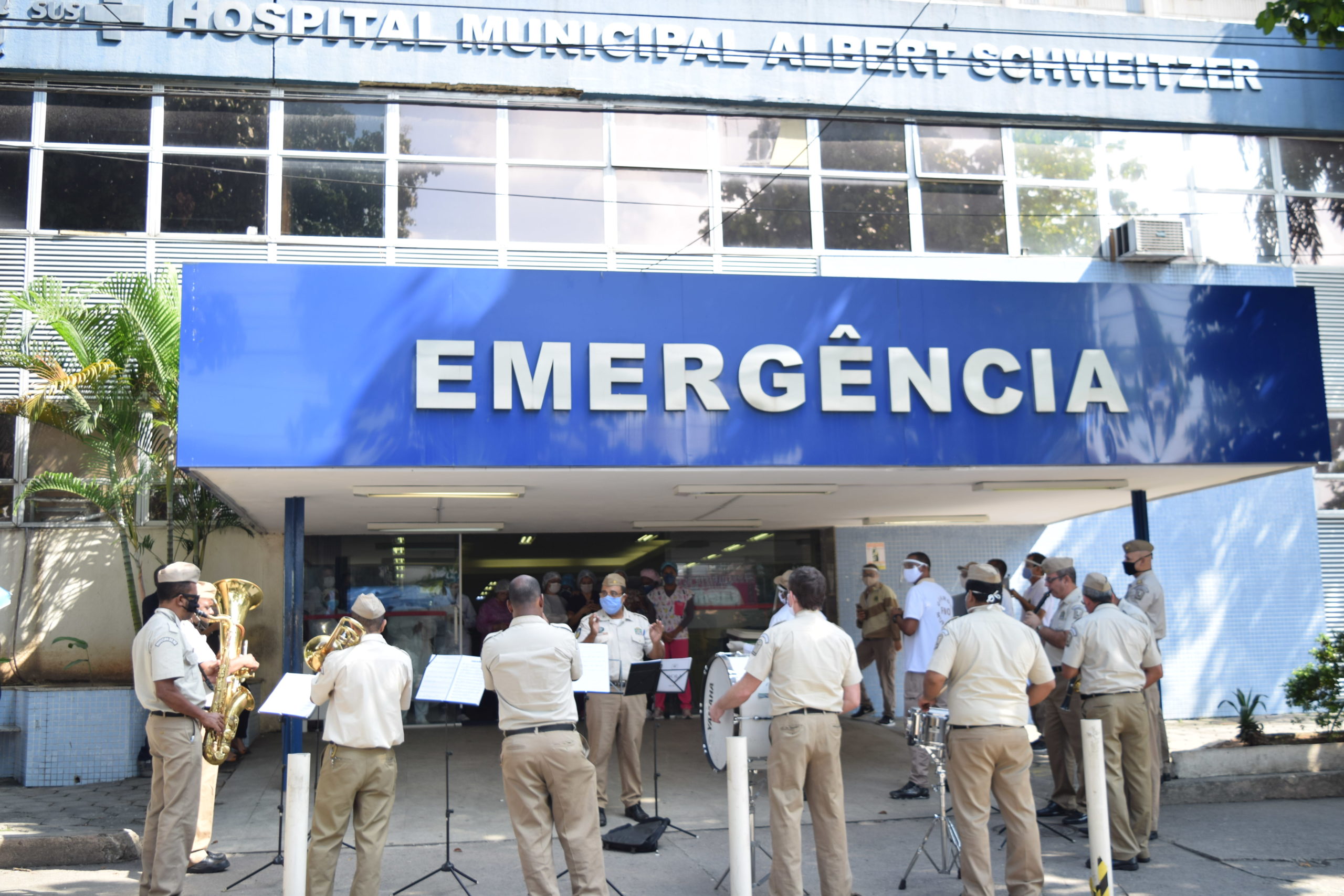A Prefeitura do Rio de Janeiro, por meio da Guarda Municipal, realiza esta semana o “Abraço Musical na Saúde”, levando músicos da Banda Sinfônica a hospitais para homenagear os profissionais de saúde que estão na linha de frente no combate ao novo coronavírus.A ação conta ainda com a equipe lúdica do Grupamento de Ronda Escolar, que utilizará os bonecos mascotes para exibirem uma faixa com mensagem de agradecimento aos profissionais de saúde.