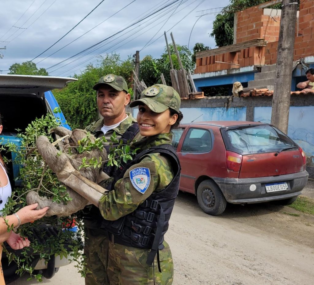Guarda Municipal resgata bicho preguiça em Itaipuaçu, na Região Metropolitana