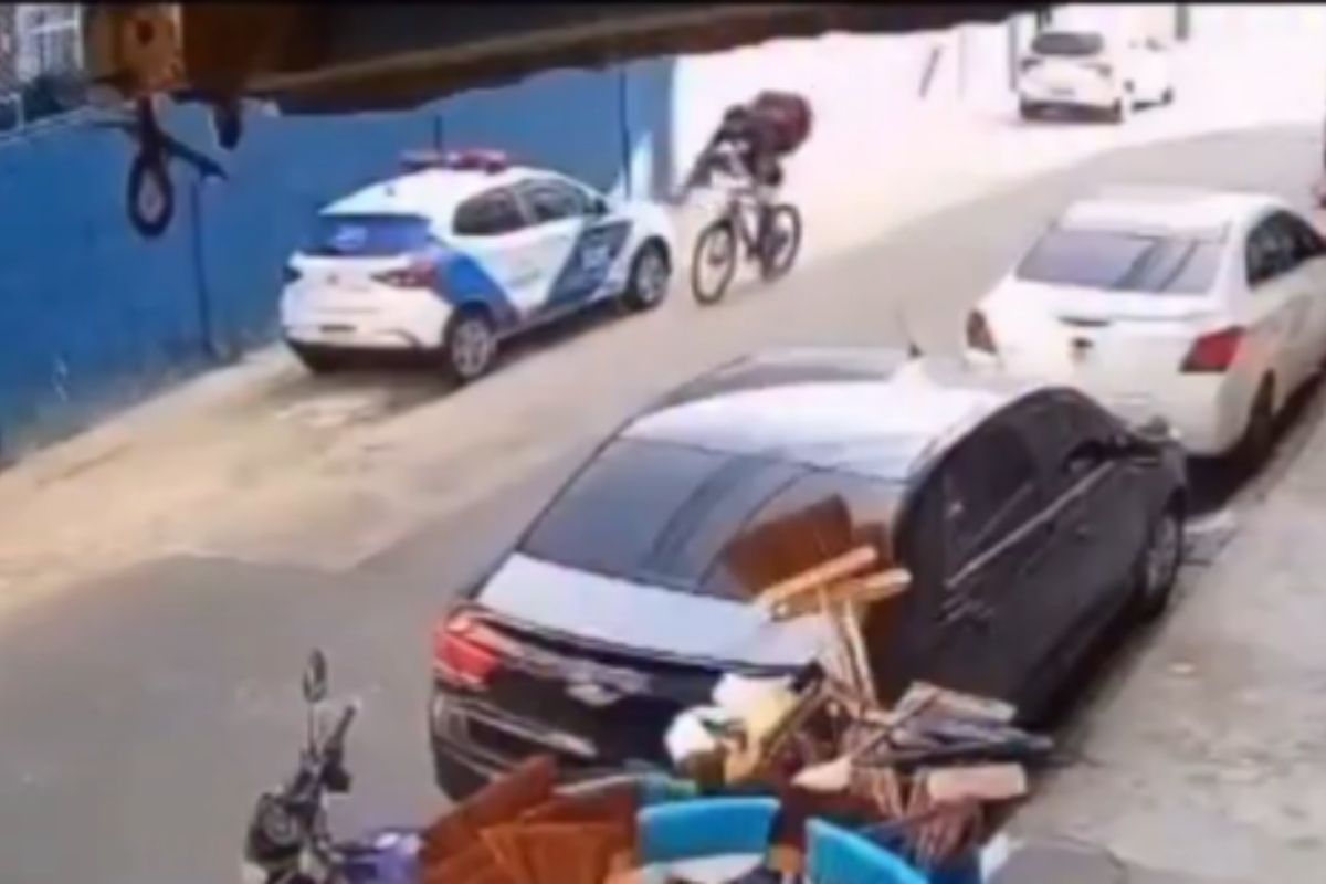 Segundo os agentes, o suspeito seguia de bicicleta quando, deliberadamente, chutou o retrovisor da viatura e tentou fugir do local. A ação provocou danos ao veículo oficial e mobilizou equipes de patrulhamento da operação.