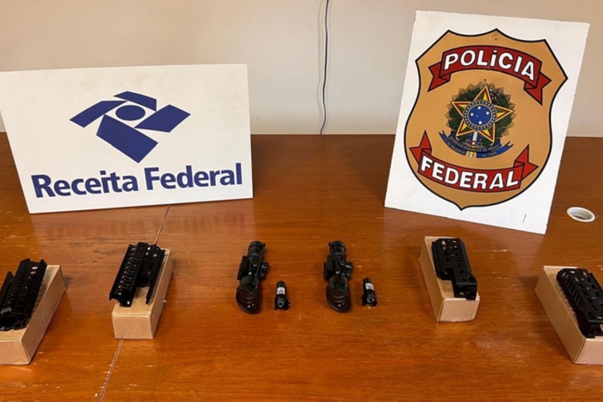 Ao todo, os agentes apreenderam quatro quebra-chamas, duas lunetas e duas miras laser. O material seria destinado a facções criminosas da região.