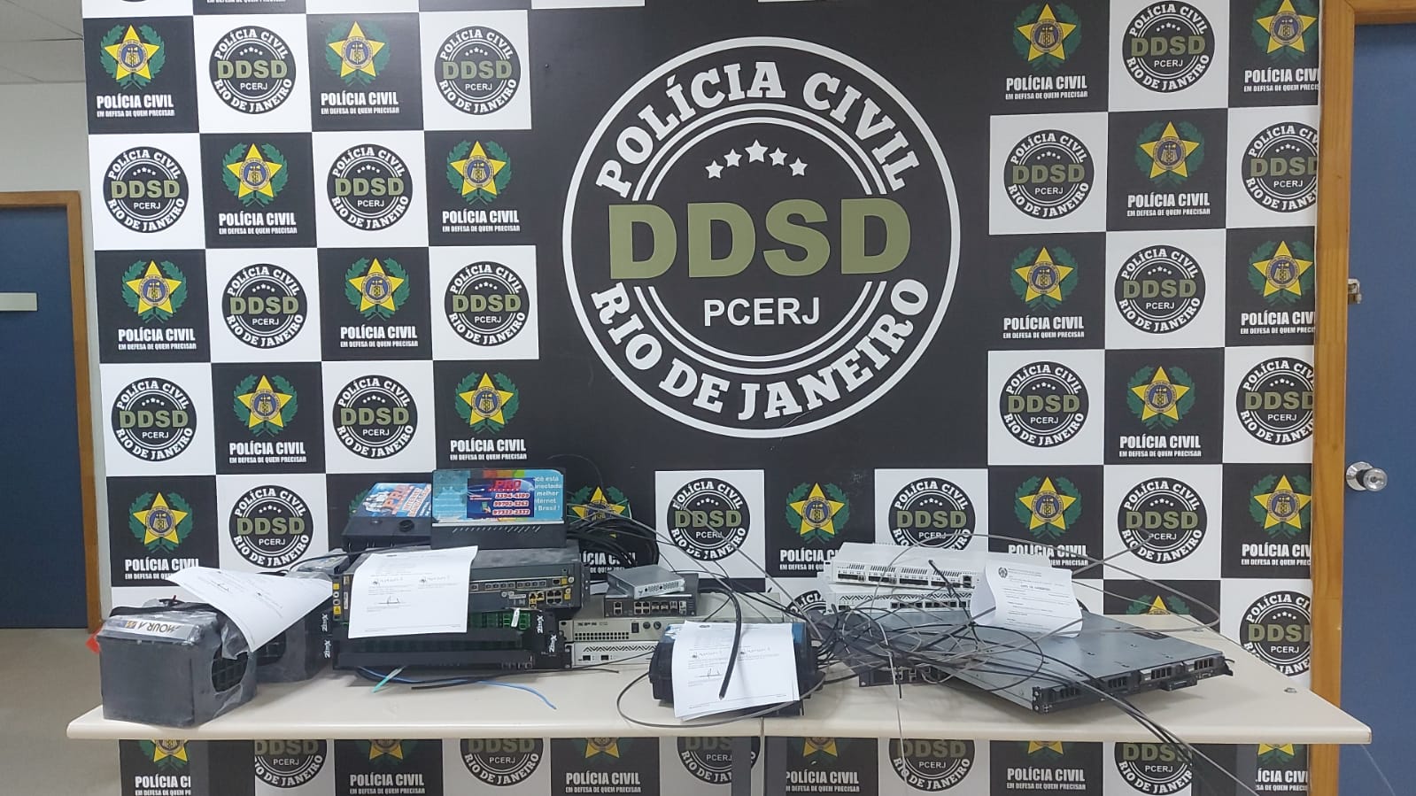 Policiais civis da Delegacia de Defesa dos Serviços Delegados (DDSD) fecharam, nesta segunda-feira (1º), uma empresa clandestina de internet, em Paciência, Zona Oeste do Rio.