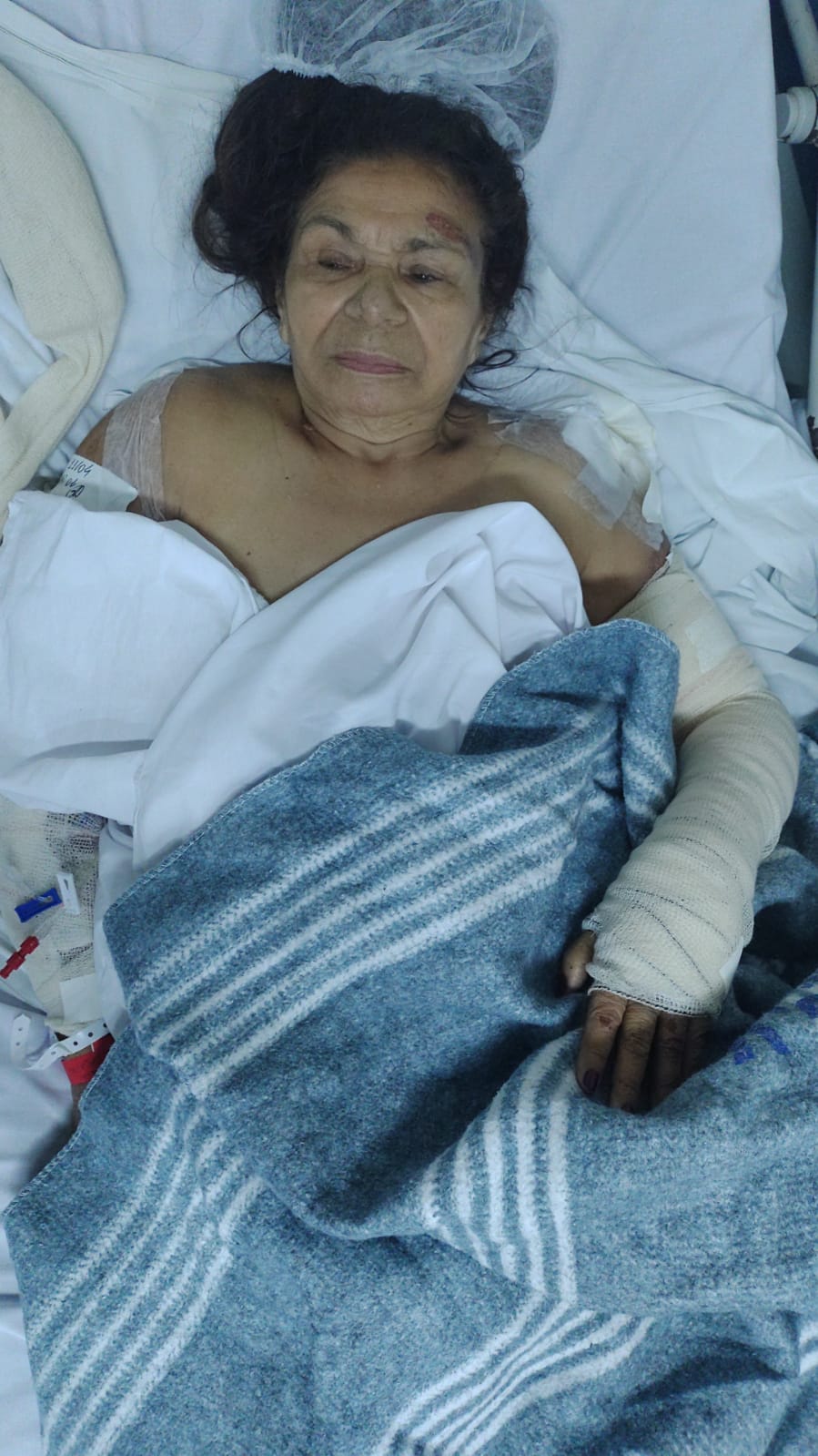 A idosa Eci Coutinho Bella, de 72 anos, que foi arrastada durante um assalto na Zona Norte do Rio, vai passar por uma cirurgia, nesta terça-feira (12), para colocar uma prótese no ombro.