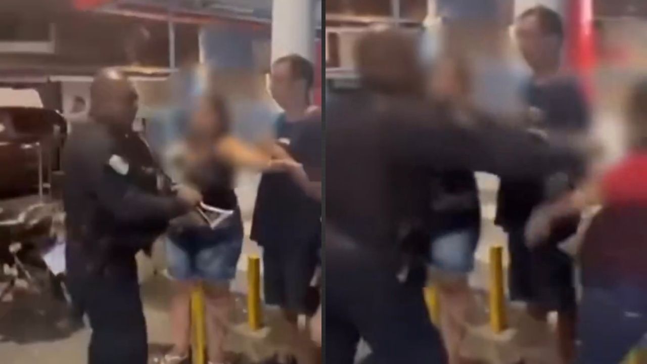 A vítima foi identificada como Gláucia da Silva. As imagens mostram o momento em que o policial atinge a idosa na região do peito, fazendo com que ela caia no chão, enquanto pessoas ao redor tentam intervir.