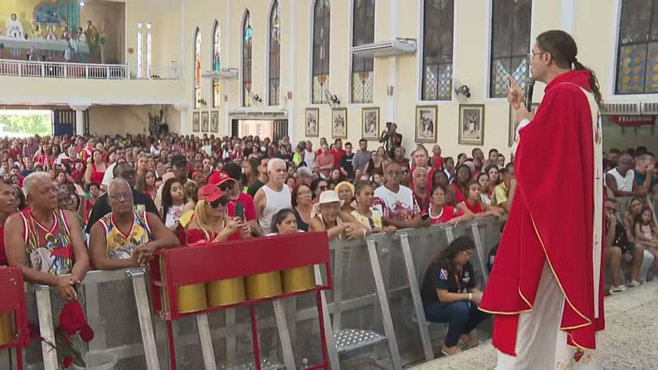 Logo após os drones, vieram a queima de fogos e a Missa da Alvorada. Ao longo de todo o dia de festa, a paróquia estima que serão acesas cerca de 60 mil velas e distribuídas aproximadamente 20 mil partículas de hóstias nas missas.