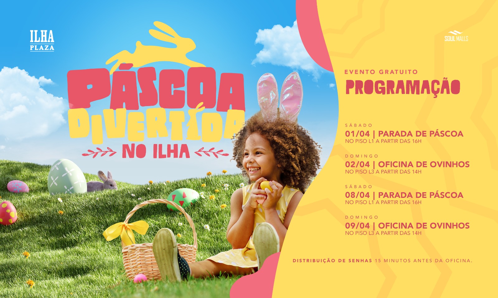 “A Páscoa é um momento especial para as famílias. Por isso, preparamos uma programação lúdica, com personagens que fazem parte do imaginário infantil e música para todos os gostos. O Ilha Plaza é um shopping familiar e proporcionar esses momentos mágicos é a certeza que estamos no caminho certo”, diz Matheus Ramalho, gerente de marketing do Ilha Plaza Shopping