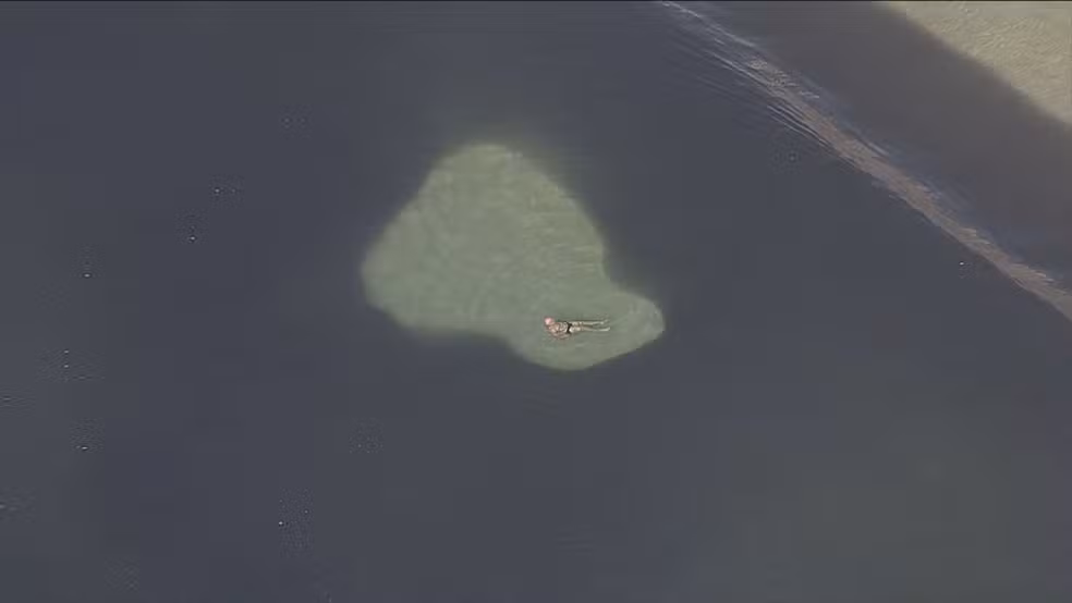 Vistas de cima, as manchas escuras na água chegaram a lembrar poluição. No entanto, de perto, foi possível identificar grandes quantidades de peixes reunidos, que se alimentavam de micro-organismos no local.