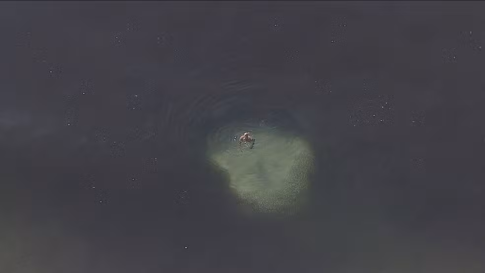 Vistas de cima, as manchas escuras na água chegaram a lembrar poluição. No entanto, de perto, foi possível identificar grandes quantidades de peixes reunidos, que se alimentavam de micro-organismos no local.