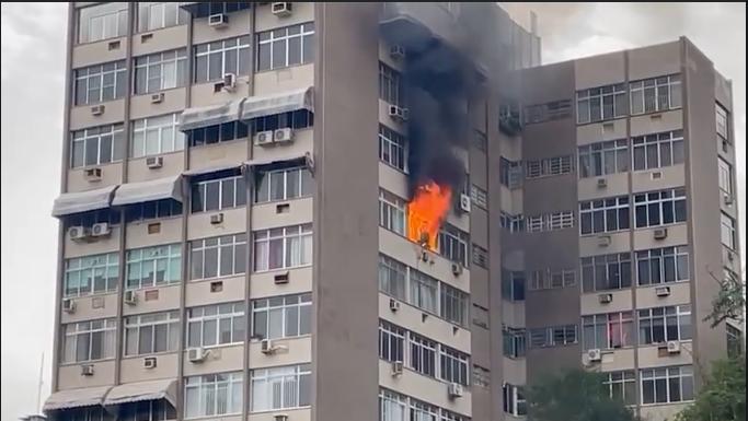 Um incêndio atingiu um apartamento no oitavo andar de um prédio na Tijuca, Zona Norte do Rio, na manhã desta quarta-feira (14).