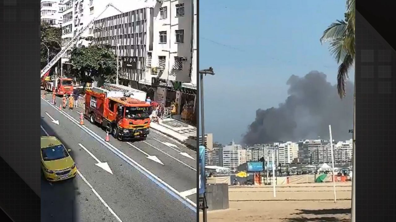 Incêndio atinge estabelecimento em Copacabana e forma nuvem gigante de fumaça