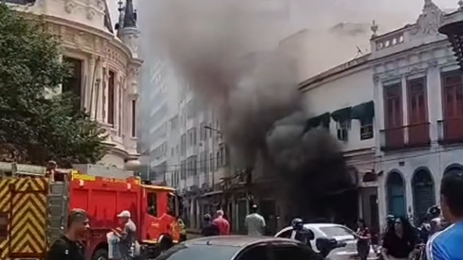 Na tarde de terça-feira (14), outro incêndio atingiu imóveis na Lapa, região central do Rio. O fogo começou no bar Sonho Lindo e se espalhou para uma farmácia e o prédio acima, localizado na esquina das avenidas Gomes Freire e Mem de Sá.