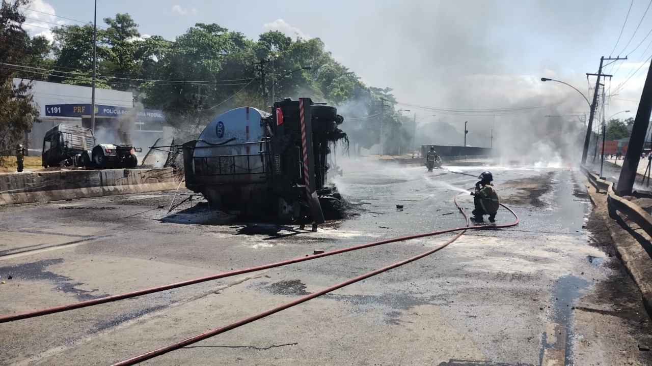 Incêndio em caminhão-tanque interdita Via Dutra para reparos no asfalto
