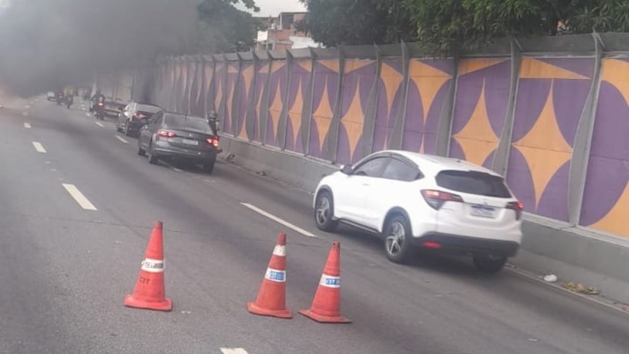 Incêndio em carro interdita faixas e trava trânsito na Linha Vermelha