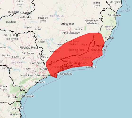 Todas as regiões do estado do Rio estão na área de vigência do alerta.