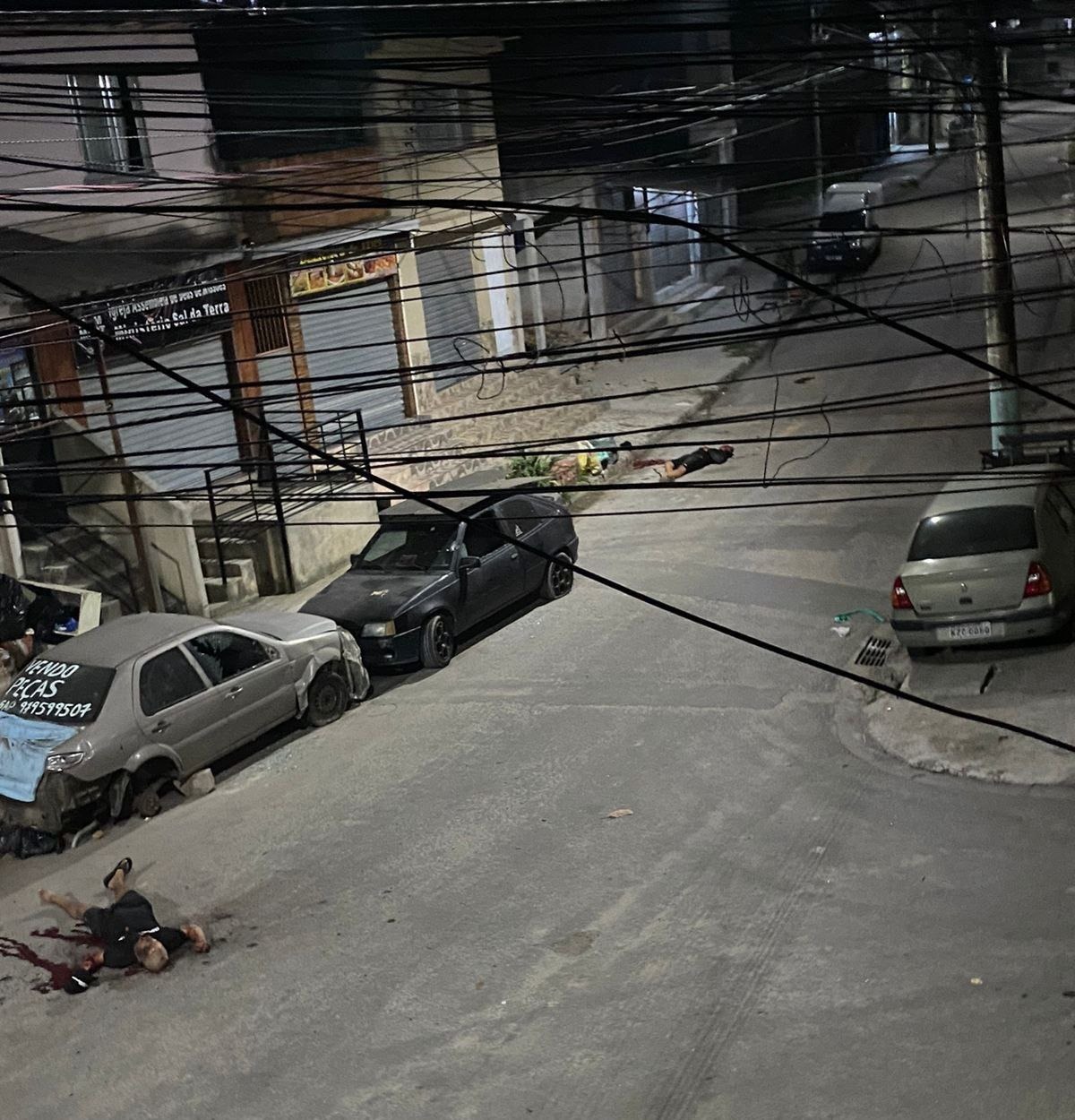 Confronto ocorre entre criminosos rivais por disputa de território; vídeos mostram a sequência de disparos e corpos caídos