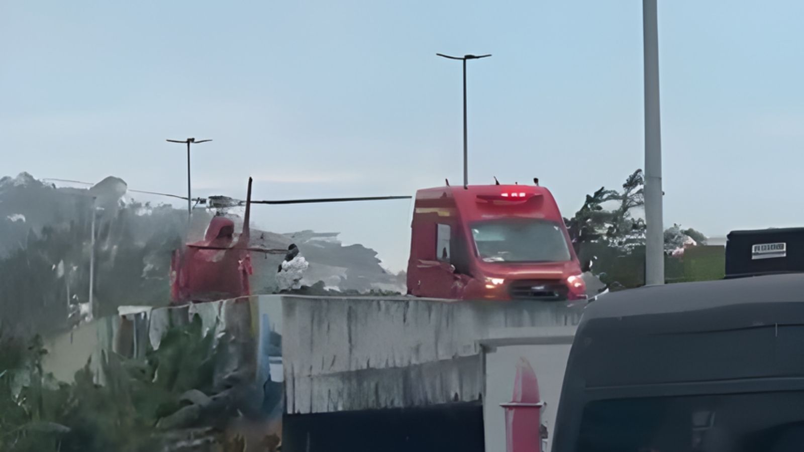 O bloqueio aconteceu no trecho da via que segue em direção ao Recreio. A área foi isolada para garantir segurança durante o pouso e a operação de socorro.