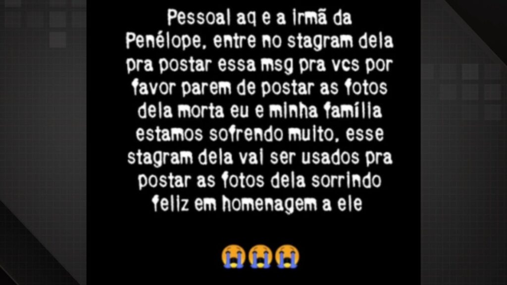 Ela pediu que imagens do corpo de Penélope parem de ser compartilhadas e afirmou que o perfil da irmã será mantido apenas para homenagens.