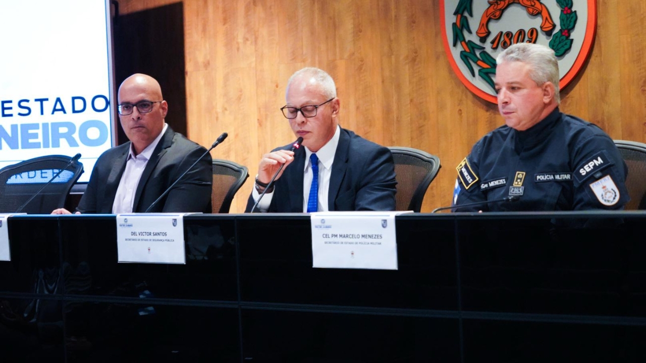 O pronunciamento contou com a participação do secretário de segurança Pública, Victor Santos, do comandante da Polícia Militar, Coronel Marcelo Menezes, e do secretário da Polícia Civil, delegado Felipe Curi.