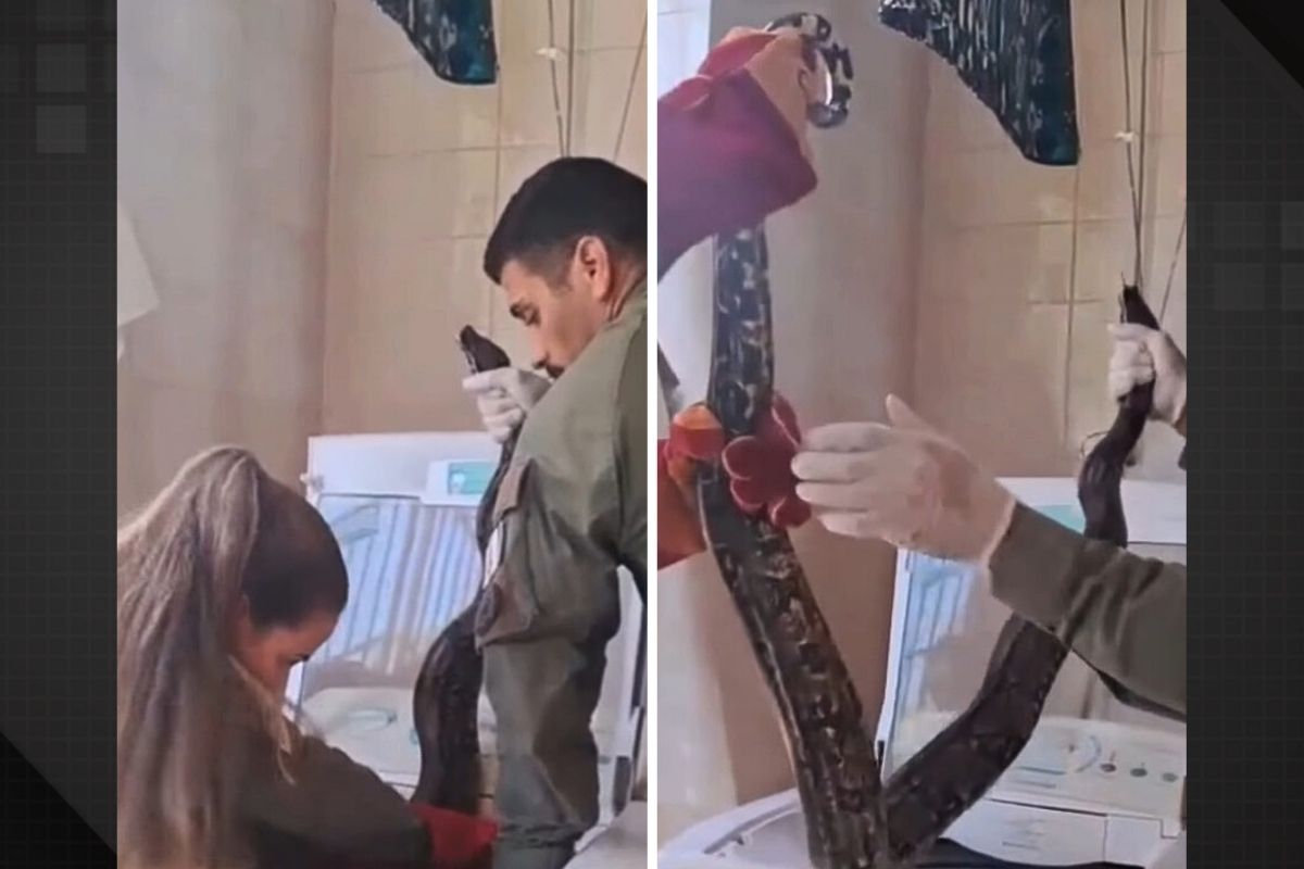 Vídeo: morador de Niterói encontra jiboia gigante dentro de máquina de lavar