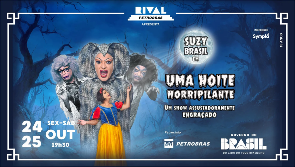 - Ingressos: https://teatrorivalpetrobras.com.br/suzy-brasil-na-estreia-de-uma-noite-horripilante/