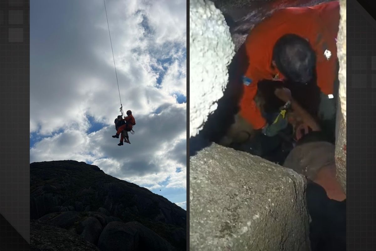 Gabriel caiu em fenda após se perder de amigos na descida da Pedra do Sino; resgate durou três horasUma trilha que começou como uma aventura entre amigos terminou em um resgate dramático na Serra dos Órgãos, no Rio de Janeiro. Gabriel Pessanha, um dos integrantes do grupo, ficou preso por horas entre duas pedras após se separar dos colegas durante a descida da Pedra do Sino, ponto mais alto do parque.