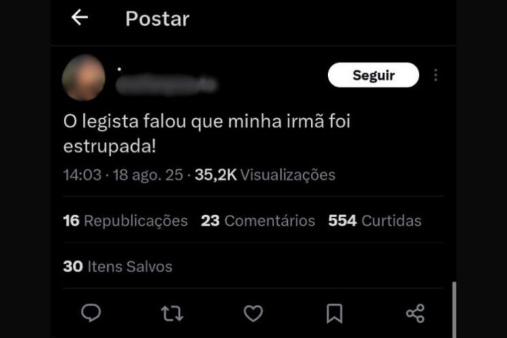 Através de uma publicação no X, a irmã de Sther disse que a informação foi dada pelo legista que realizou a autópsia no corpo da vítima