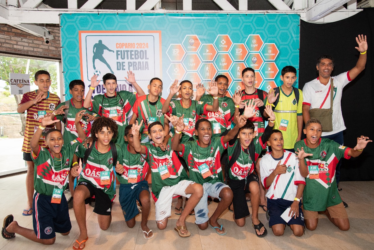 Jovens de comunidades da Zona Sul do Rio participam de jogo de futebol social em Copacabana