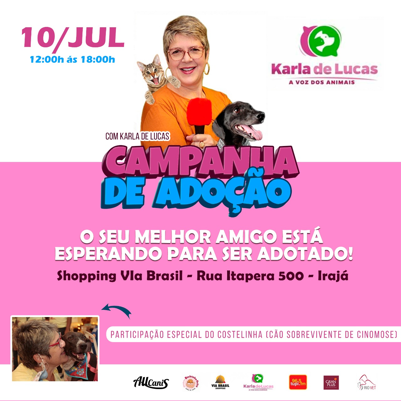 A produtora do ‘Show do Antônio Carlos’, Karla de Lucas, vai realizar neste sábado (10), às 12h, o projeto “Bichinho Feliz”, no Shopping Via Brasil, Irajá, Zona Norte do Rio. O objetivo da campanha é promover a adoção de cães e gatos que foram abandonados pela cidade. Segundo a jornalista, a adoção é muito importante para que esses animais superem o trauma. “Apesar da Lei Sansão, que aumentou para 5 anos a pena para crimes de maus tratos e abandono, animais continuam sendo abandonados em grande escla pelas ruas do Rio. E não apenas, vira-latas, como cães e gatos de raça também. O Projeto Bichinho Feliz, composto por 18 voluntários, faz esse trabalho de resgate, reabilitação e adoção dos animais que foram abandonados ou maltratados”, disse Karla.