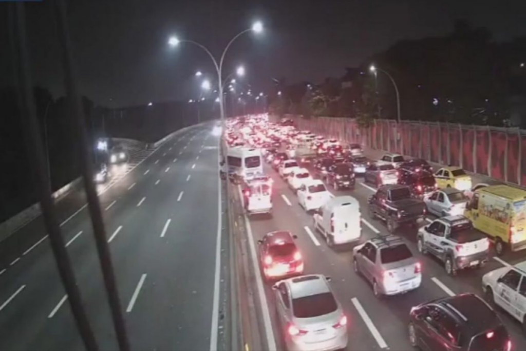 Devido à ação policial, a Linha Vermelha, sentido Centro do Rio, registrou um grande congestionamento entre a Maré e o Caju.