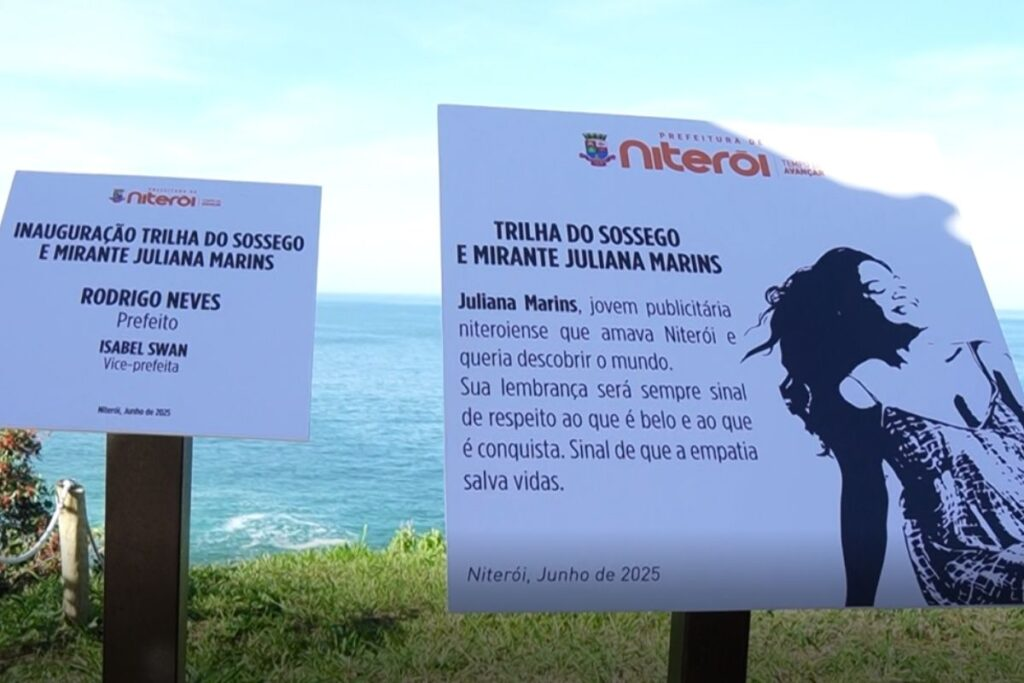 Nesta terça-feira (8), a Prefeitura de Niterói inaugurou uma placa em homenagem à niteroiense Juliana Marins, no mirante da Praia do Sossego, em Camboinhas. De acordo com familiares, o local era um dos preferidos da publicitária.