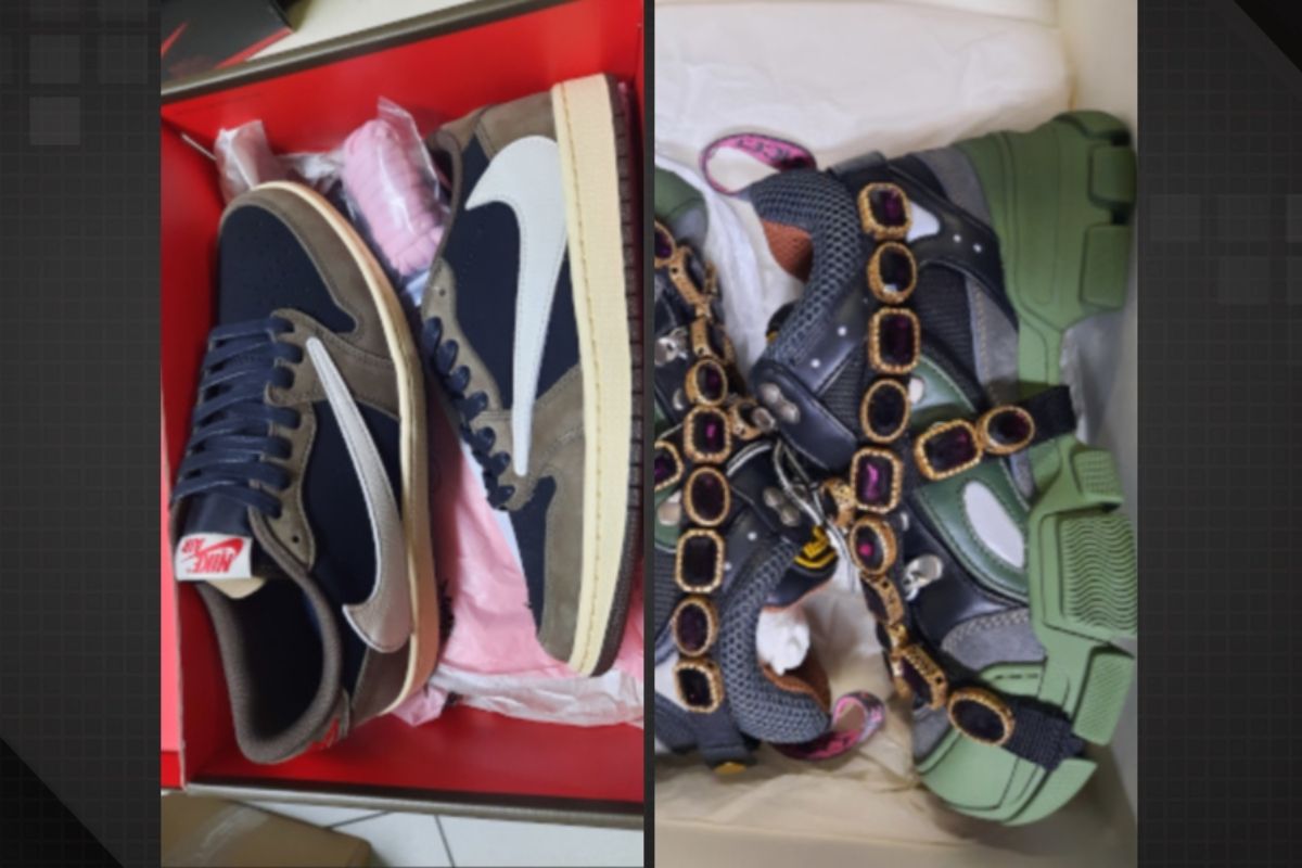 Serão 155 lotes de mercadorias de marcas renomadas e modelos exclusivos, como Nike, Adidas, Supreme, Louis Vuitton e Gucci