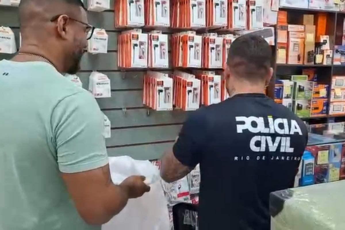Aparelhos e acessórios falsificados de grandes marcas foram apreendidos em operação da DRCPIM; lojistas foram conduzidos para deporUma operação da Delegacia de Repressão aos Crimes contra a Propriedade Imaterial (DRCPIM), coordenada pelo delegado Victor Tuttman, apreendeu milhares de produtos falsificados durante ação no Centro do Rio de Janeiro.