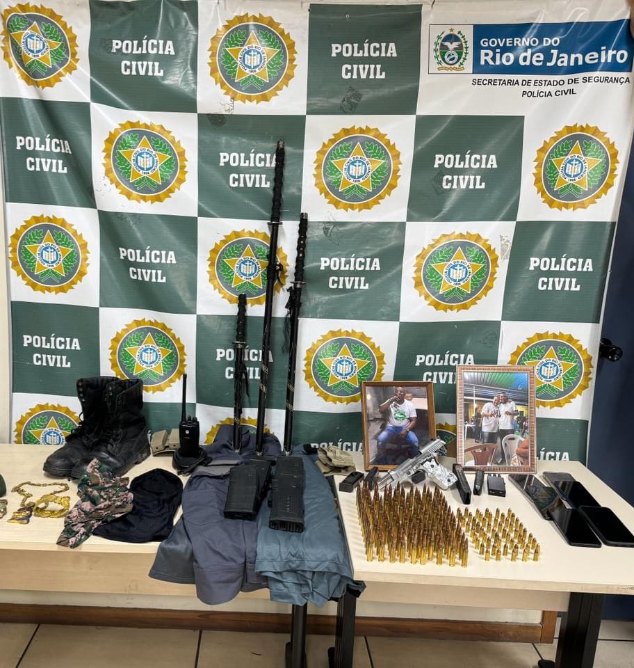 Além do armamento, foram encontrados na operação radiotransmissor, espadas, fardamento policial e placas de colete balístico. A Polícia Civil reforça seu compromisso em continuar as investigações para capturar todos os envolvidos com o grupo criminoso e conta com a colaboração da população para identificar outros autores e combater os crimes em todo o estado do Rio de Janeiro.