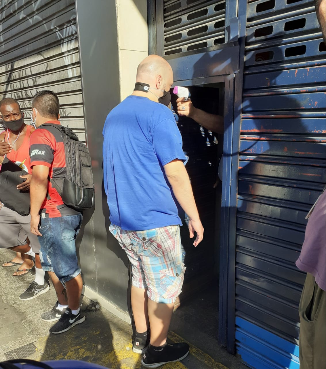 Na entrada do Centro Comercial da Zona Norte do Rio, houve uma grande fila formada na calçada. No entanto, todos os funcionários e clientes que entram no Mercadão tem a temperatura aferida por seguranças. Dentro do espaço álcool gel em vários pontos.