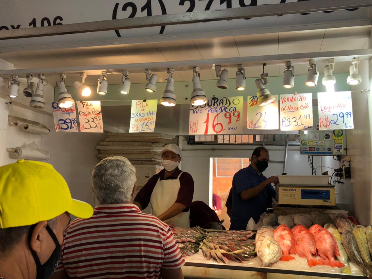 Com aferição de temperatura na entrada e capacidade máxima de 100 consumidores por mês, o mercado São Pedro, em Niterói, na Região Metropolitana do Rio, registrou filas na manhã desta quinta-feira (1º), véspera da semana santa.