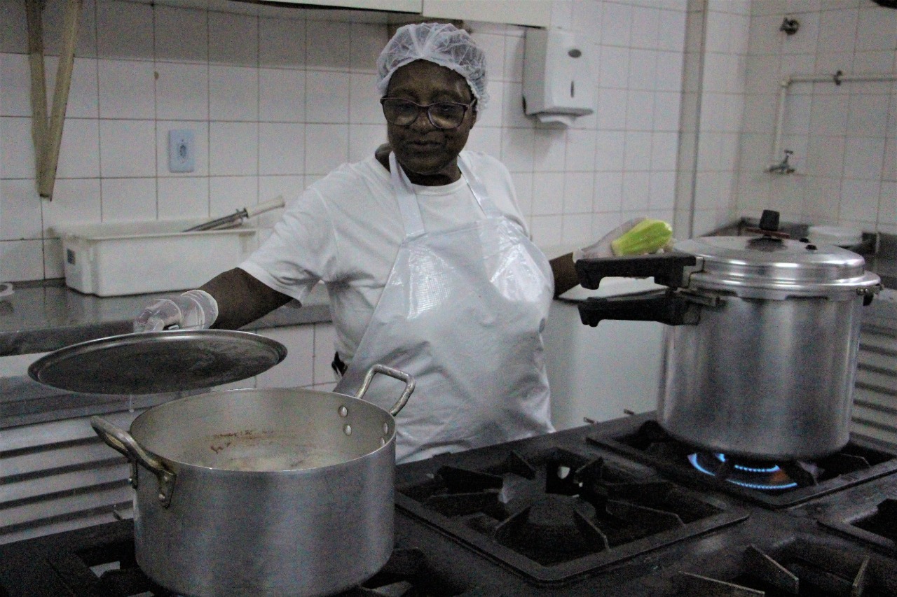 “Comecei aqui como auxiliar de serviços gerais. Somente depois, com a saída de uma merendeira, eu me apresentei para cozinhar para os alunos. E foi assim. Acho que gostaram tanto da minha comida que nunca mais saí dessa cozinha”, diz, orgulhosa.