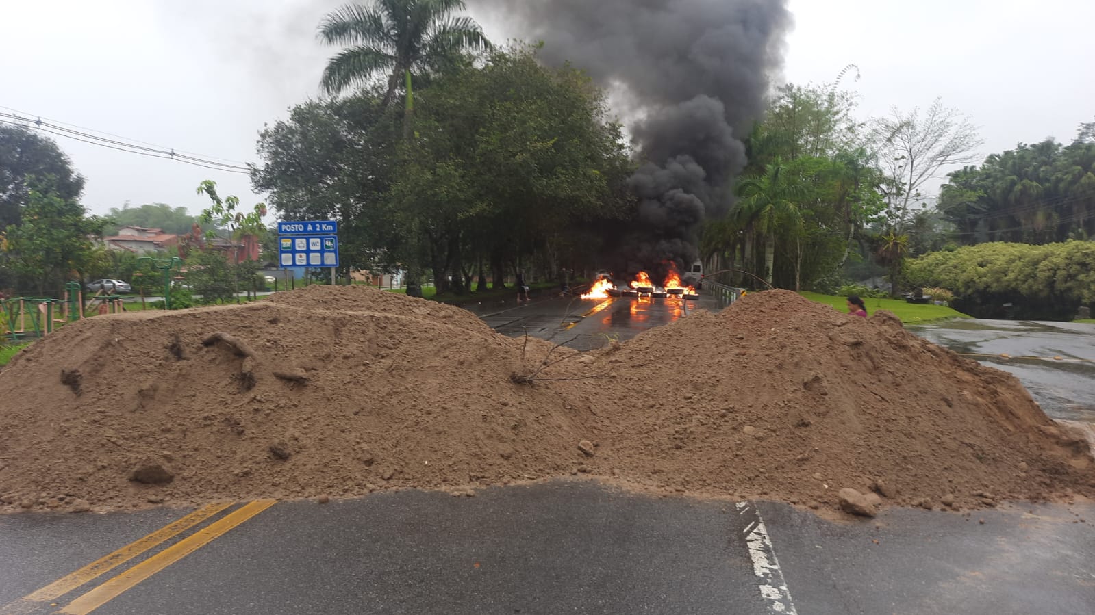 As pistas da rodovia Washington Luiz, na altura da Reduc, em Caxias, na Baixada, foram fechadas nos dois sentidos. A BR-101, em Itaboraí, tem faixa interditada e apenas veículos leves e ônibus estão passando.