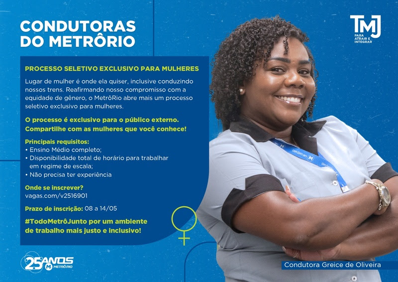 “O processo seletivo é mais um realizado pelo MetrôRio visando promover, ainda mais, a diversidade e a inclusão na empresa, valorizando a atuação das mulheres e fortalecendo a presença delas em posições tipicamente antes ocupadas por homens.”, diz a concessionária.