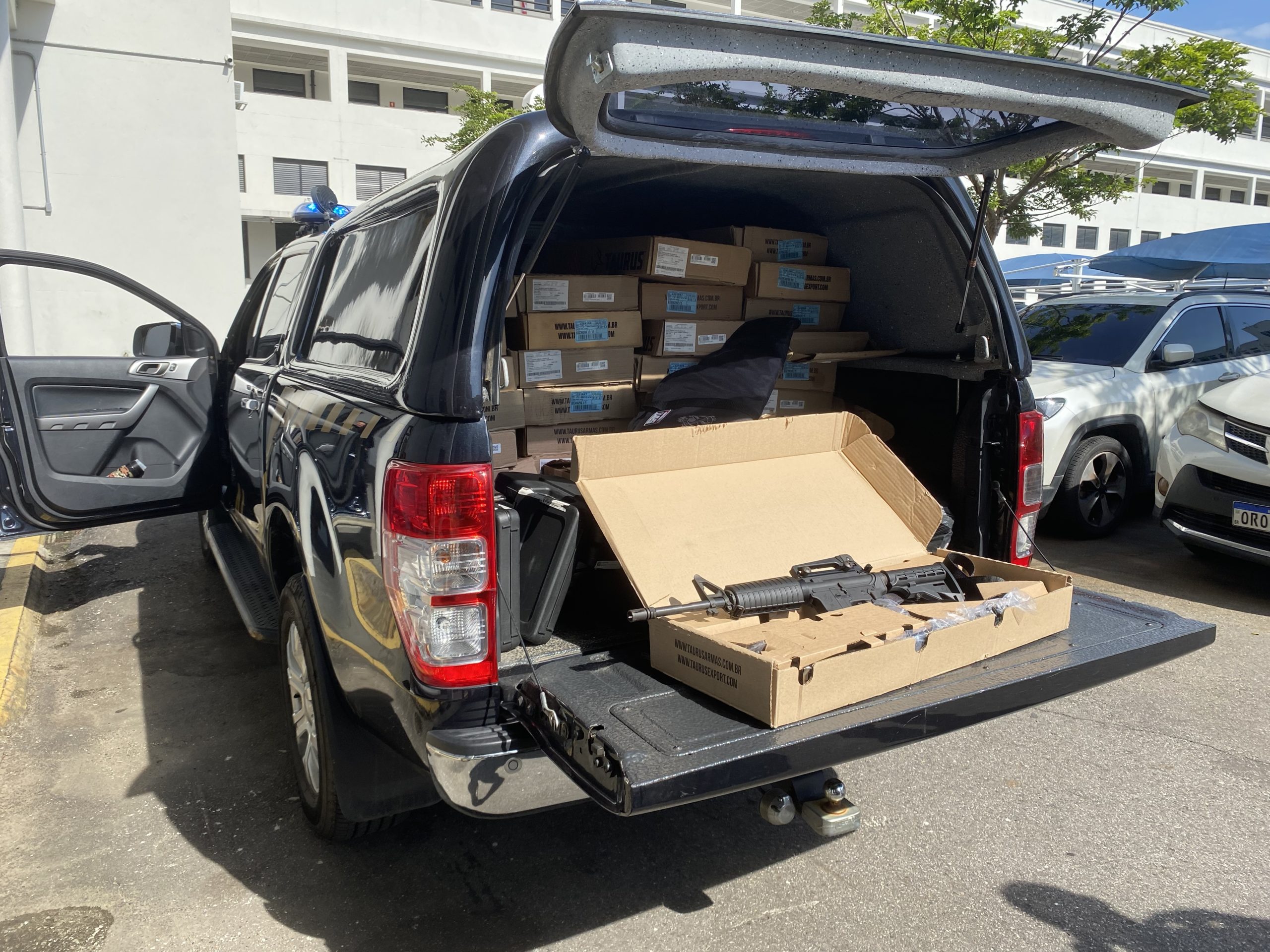 Na ocasião, foram apreendidas 80 armas, dentre as quais 68 fuzis e 12 revólveres, assim como munições, todas de uso restrito.