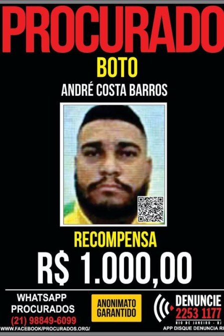 O criminoso segue foragido. Consta também um mandado de prisão por tráfico de drogas. André Boto também é acusado de extorquir comerciantes de Jacarepaguá e Recreio dos Bandeirantes, na Zona Oeste do Rio.